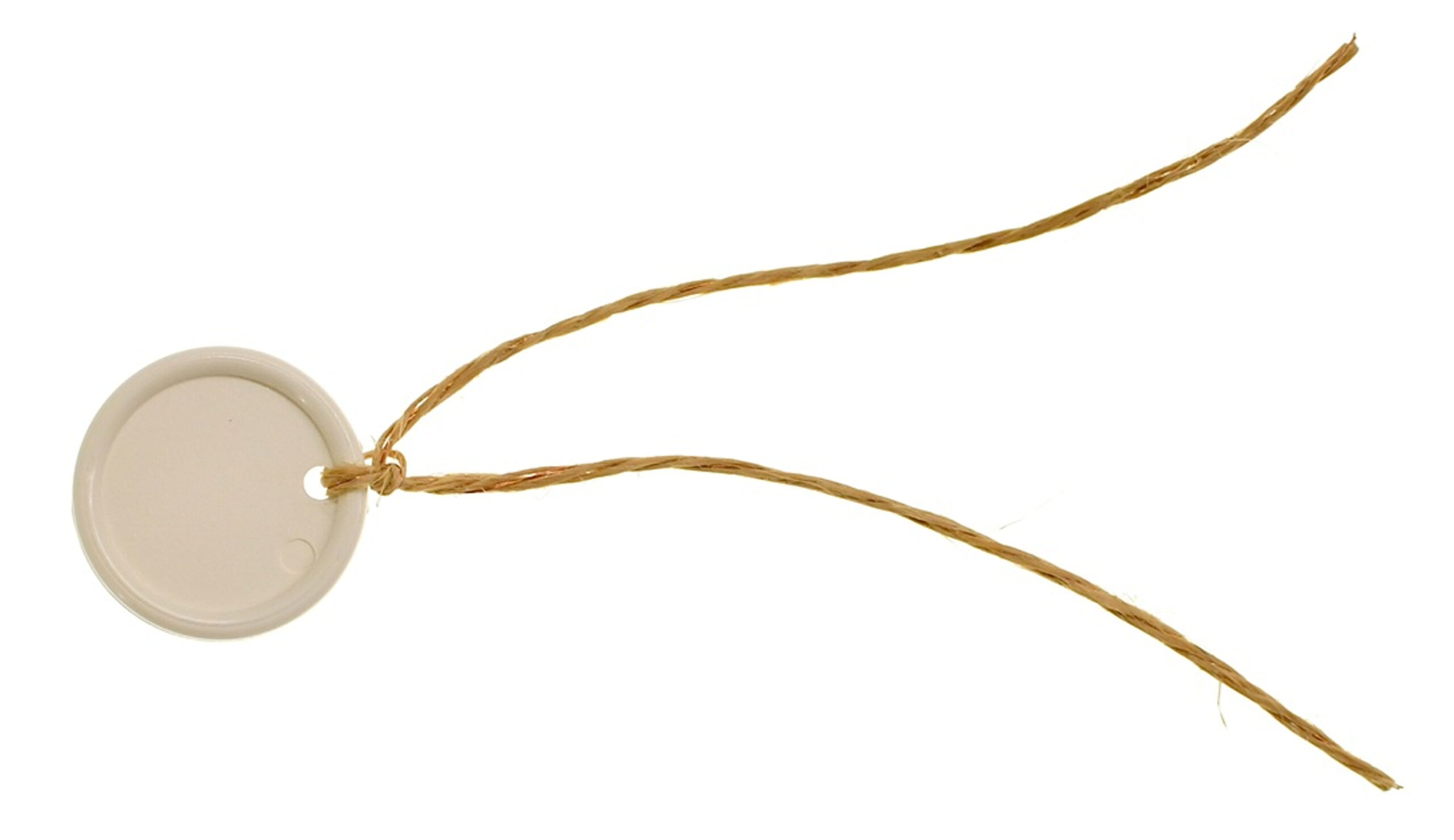 Die kleinen runden Namenmarken, aus weissem Kunststoff, welche an den persönlichen Effekten (Kleidern, Gepäck) angebracht wurden.
